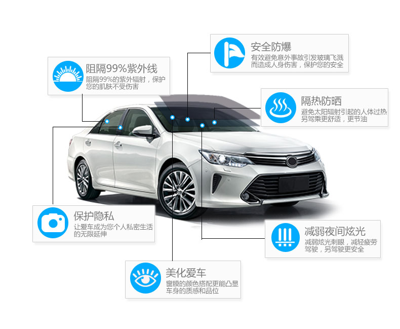 我们采用了现代技术磁控溅射和纳米光学工艺,替代了传统窗膜。我们利用专有技术、工艺、涂料,生产出高质量高性能的窗膜,达到较高的光学精密水平。这使本品汽车膜具有高清晰度,无失真,并且能有效降低能源成本,提高隐私,保证安全,减少热量和眩光,以及减少红外线穿透。